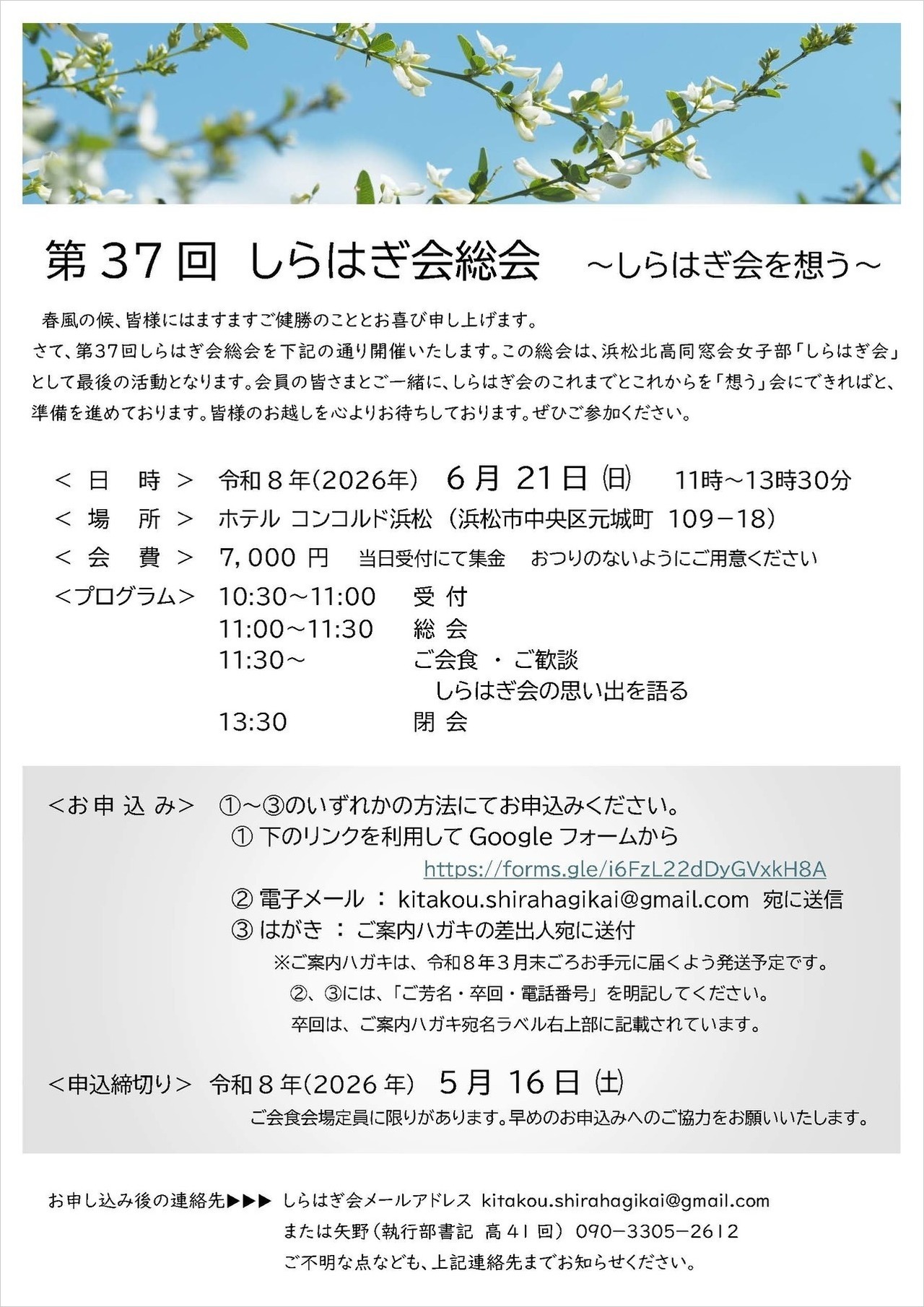 さて、令和2年3月15日浜松北高同窓会館で行われた、執行部会と、しらはぎ総会幹事学年代表者(39回40回)との話し合いで、以下のように決定させていただきましたのでお知らせいたします。