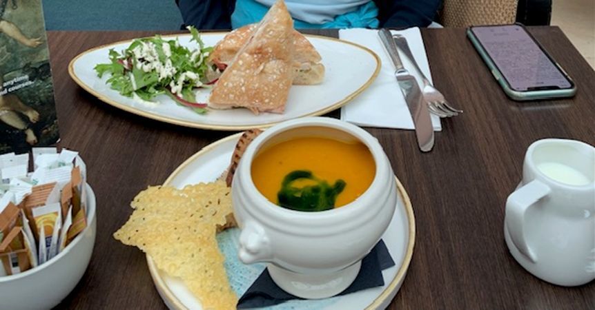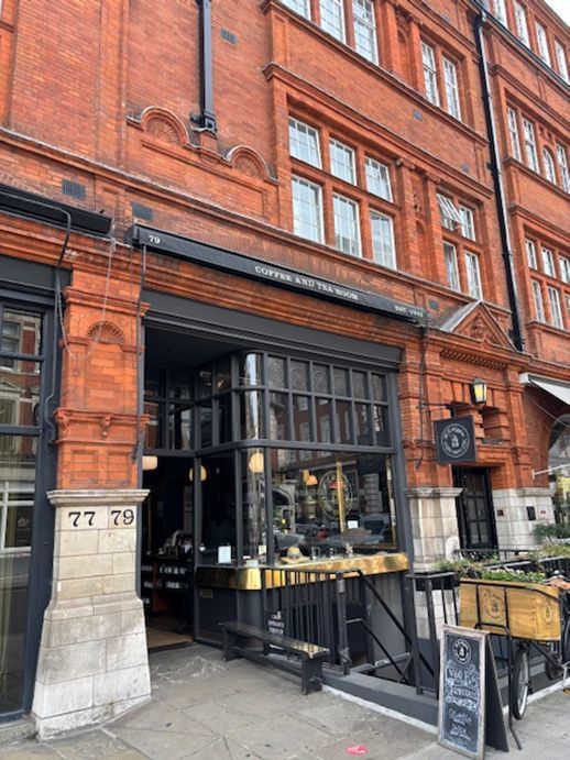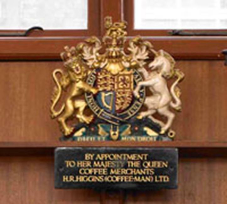 ここに来る前に立ち寄ったのは、目と鼻の先にあるヒギンズ珈琲紅茶店(H.R.Higgins)です。2006年に娘がロンドンに行った時、お土産に紅茶を買って来てくれてとてもおいしかったので、今回の訪問目的の一つにしていました。インド系のおばさんの詳しすぎる説明は適当に聞いて、紅茶を何種類か量り売りで買いました。元々コーヒーの輸入販売から始めた店で、英国初のコーヒー専門店の創業が1942年。そこから名付けられた「ブレンド1942」を購入しました。そして1979年、エリザベス女王よりロイヤルワラント(英国王室御用達)に認定されました。ロイヤルワラントの選定基準は厳格な為、とても名誉なことです。店には大きな紋章が飾られていました。地下は喫茶店になっていて、螺旋階段を降りて一休みしました。カフェラッテがとてもおいしかったです。